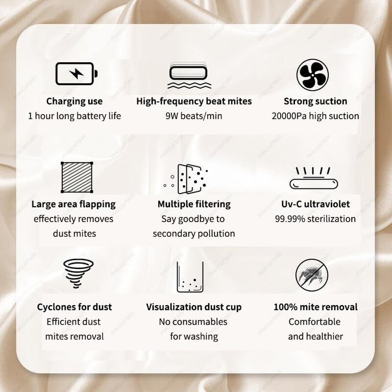 Suitable for vacuuming dust mites, mattresses, sofas, pillows, cushions or bedding.