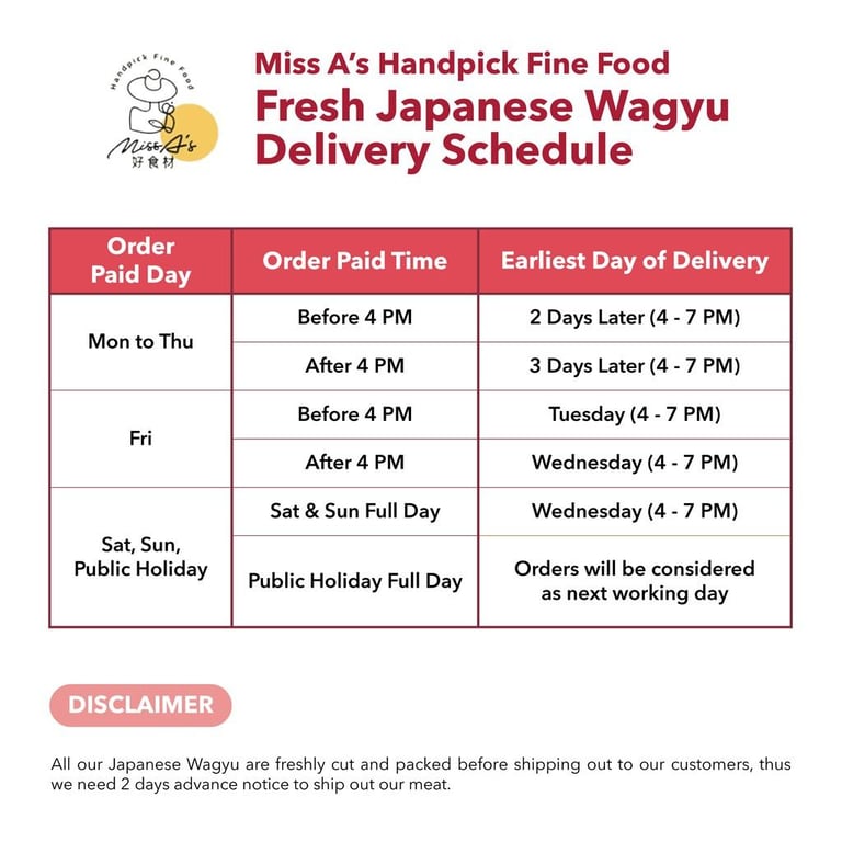 - All our Japanese Wagyu are freshly cut and packed before shipping out to our customers, thus we need 2 days advance notice to ship out our meat.
