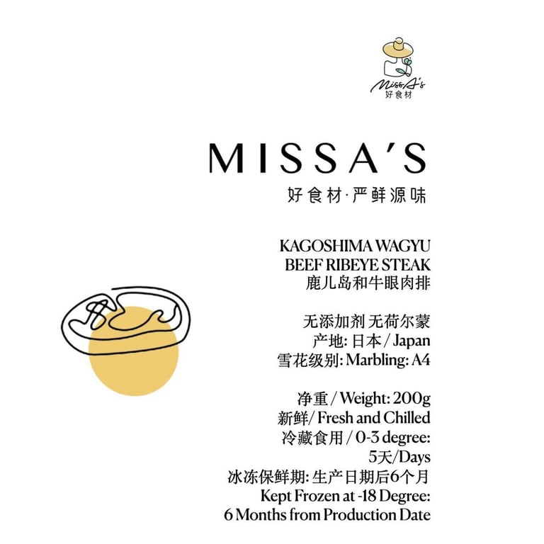 Kagoshima Wagyu Beef Ribeye Steak Marbling: A4 Grain-fed, antibiotic-free, no growth hormones Weight: 200g Storage in 0-3 degree: 7 Days Keep Frozen at -18 Degree: 6 Months from Production Date Production Place: Japan A4 grade with rich marbling and fine texture. Intramuscular fats provide a rich and nutty flavor while keeping the meat tender and moist. Great choice for steak cooking. 鹿儿岛和牛眼肉排 雪花级别: A4 谷饲牛排 无添加 无抗生素 无生长激素 自然饲养 产地: 日本鹿儿岛 A4品级牛排,含有丰富及分布均匀的脂肪 烹饪时内在油脂的融化赋予牛排极为丰富的风味和香气 保持肉块的鲜嫩多汁 是牛排烹饪的极佳选择 净重: 200g 冷藏食用: 7 天 冰冻保鲜期: 生产日期后6个月 Miss A’s Handpick Fine Food Fresh Japanese Wagyu Delivery Schedule: Order Paid Day : 1. Monday to Thursday Before 4pm —> 2 Days Later (4-7pm) 2. Friday Before 4pm —> Tuesday delivery (4-7pm) 3. Saturday & Sunday Full Day —> Wednesday delivery (4-7pm) 4. Public Holidays Full Day —> Orders considered as next working day All orders come in after 4pm will be considered as next working day order Disclaimer: - All our Japanese Wagyu are freshly cut and packed before shipping out to our customers, thus we need 2 days advance notice to ship out our meat.