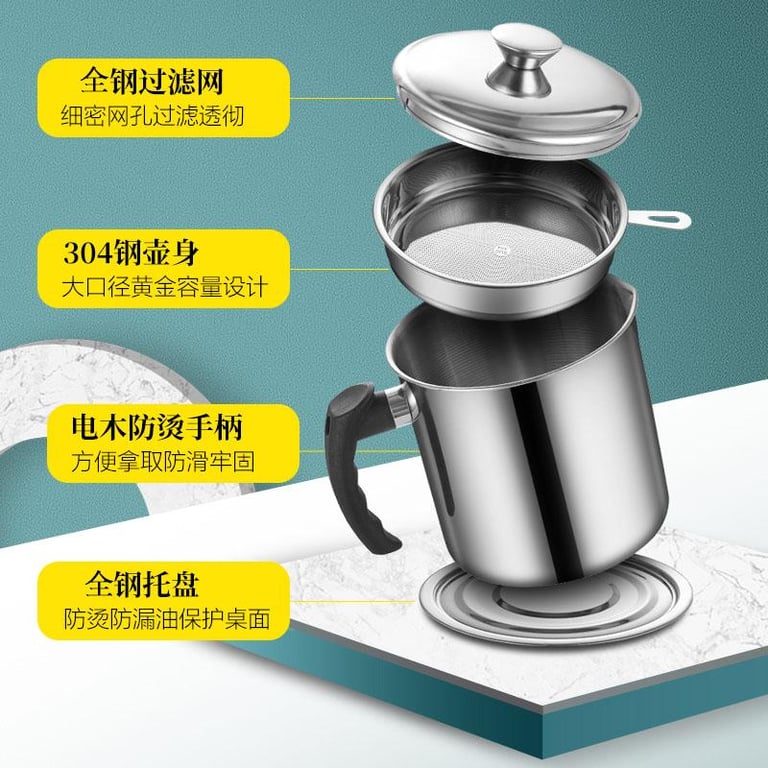 304 Stainless Steel Household Oil Pot with Strainer Oil Storage Filter Oil Tank Oil Bottle Oil Storage Filter Lard Oil Bottle Filter Residue