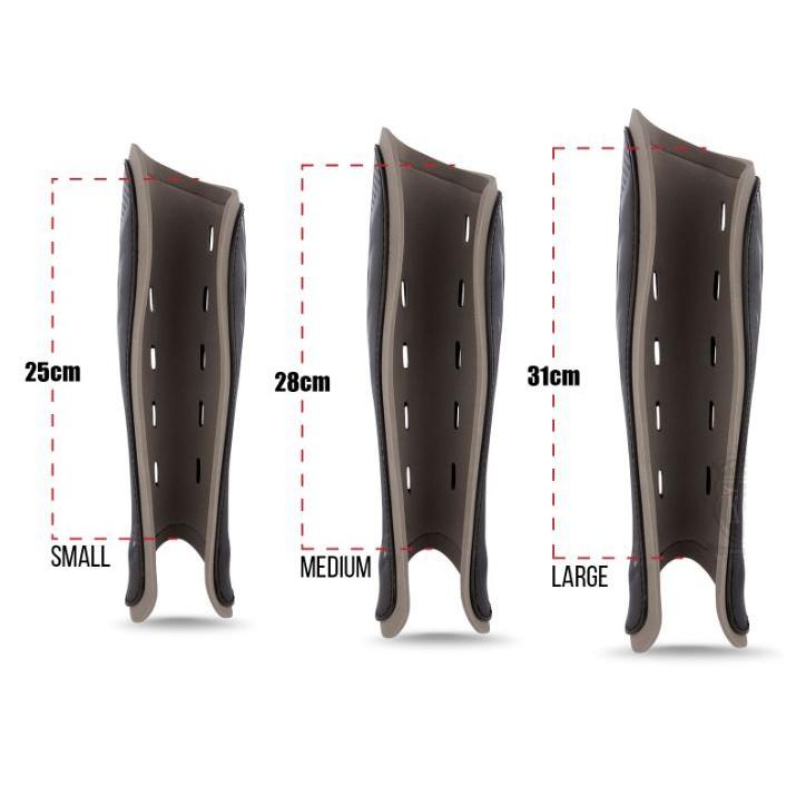 - Lightweight polymer shell with raised central spin to reduce frontal shin injuries
