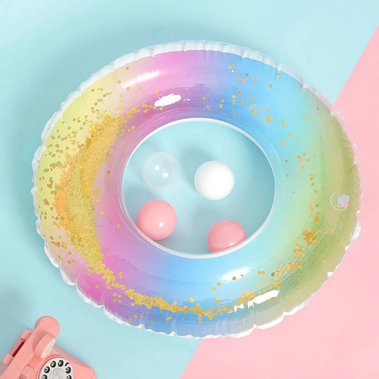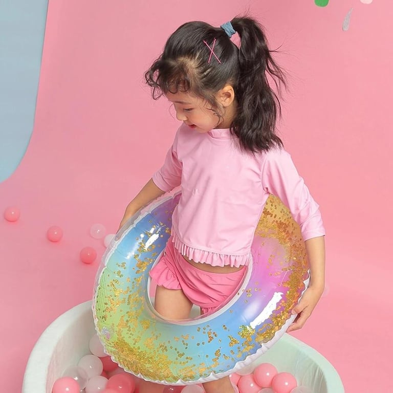Glitter Sequins Rainbow Gradient Inflatable Swimming Ring Pool Floats Water Circle Summer Beach Party Toys for Adult Children