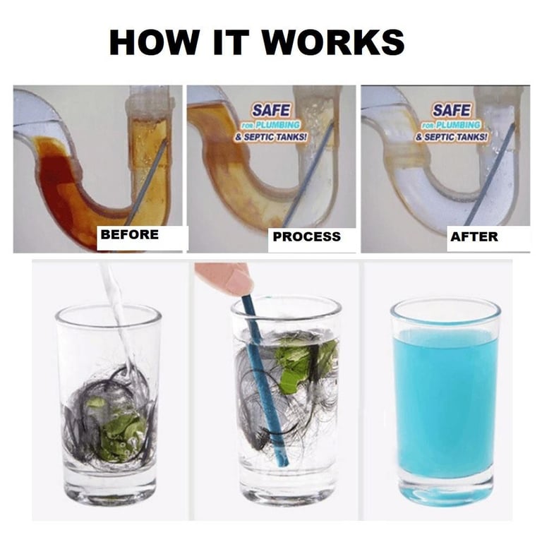 The stick rests in the -trap and slowly releases a blend of enzymes that break down food, grease, hair particles and other organic materials. Keeps drains clear, water flowing and s odor free