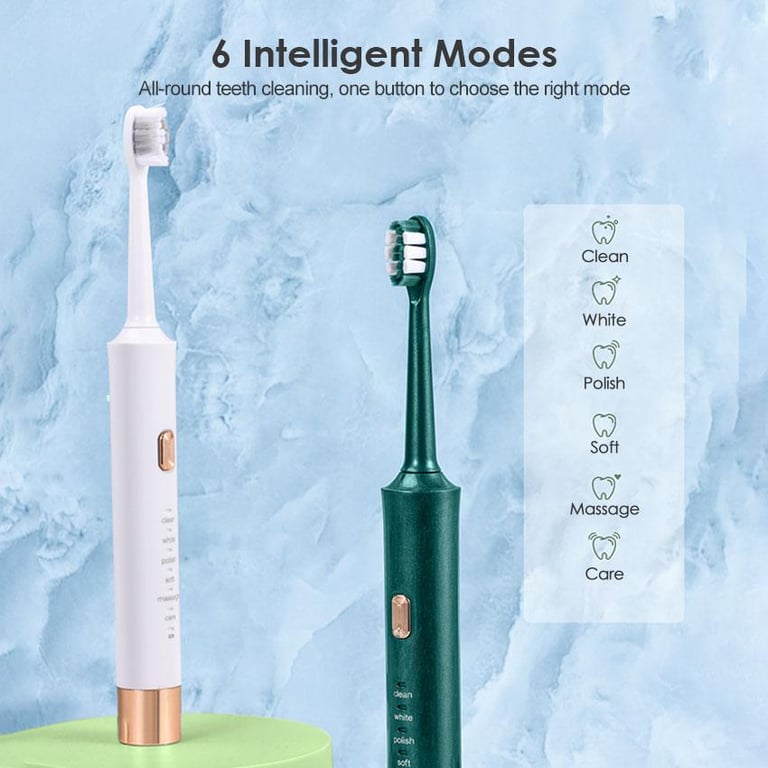- Intelligent 6 Modes: Clean, White, Polish, Soft, Massage, and Care modes to suit different teeth and gum conditions, so you can choose different modes according to your preferences and dentist's recommendations.