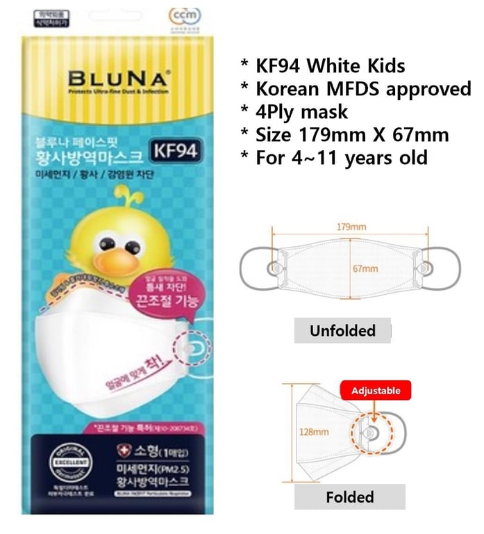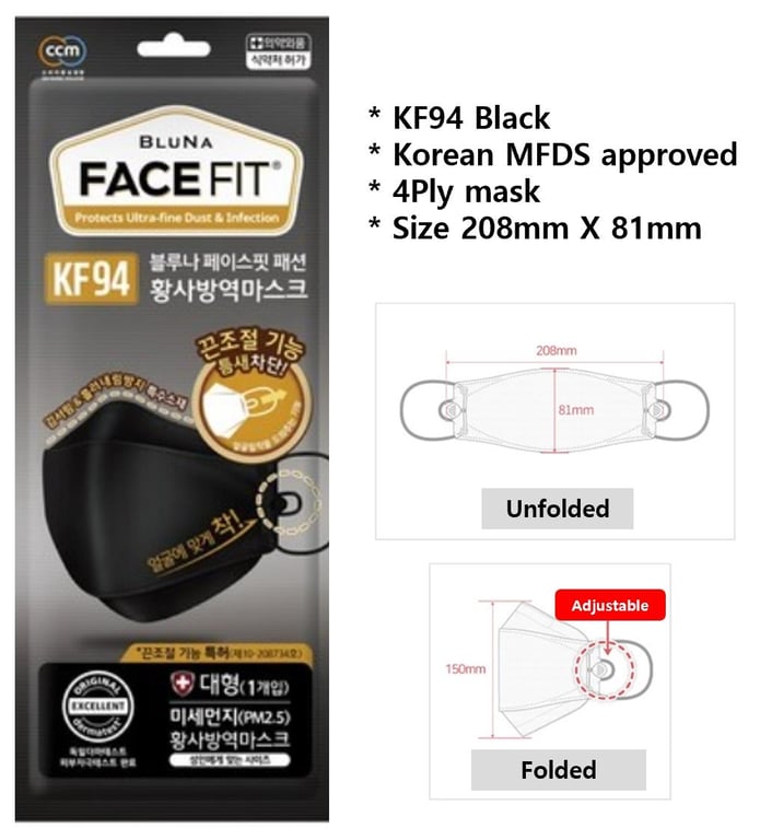 BLUNA FACE FIT mask 4Ply individual packing (10/30PCS) White / Black / Kids [Direct from Korea]