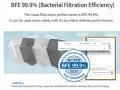 ⭐ BFE (Bacterial Filtration Efficiency) 99.9% Mask filtration performance is BFE 99.9 %. Protects from bacteria with its excellent defence performance.