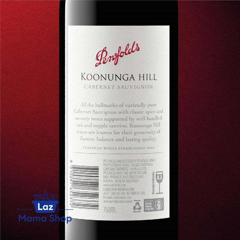 Penfolds is Australia's most famous winery. It has been crafting premium quality wines for more than 175 years and is a true Icon of the wine world. It creates amazing red and white wines from premium vineyards, some of which are well over 100 years old. Driven by generations of visionaries and innovators, a family of Australian fine wines, each with a distinct character, quality and provenance.Named after a Barossa Valley vineyard, the Koonunga Hill range has a global reputation for value, lasting quality, and consistency. It promises freshness, richness, generosity of flavour, and balance.