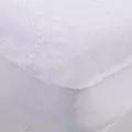 A mattress protector bed sheet in recycled polyester with a waterproof layer that prevents liquid from passing through.
