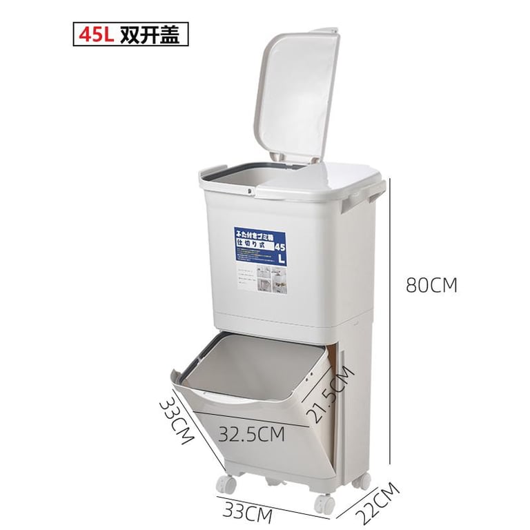 Garbage Classification Household Double-Layer Trash Can Dry Wet Separation Dustbin Japanese-Style Large Kitchen Trash Can with Lid