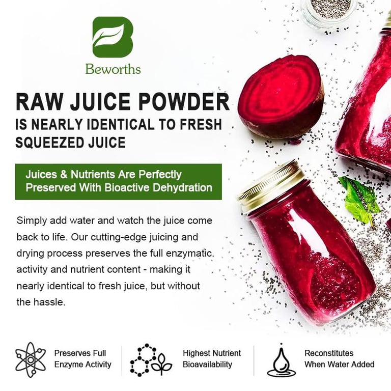 100% ORGANIC FARM GROWN BEETROOT - Our beetroot powder is dehydrated and dried to maximize the natural benefits of fresh beetroot.