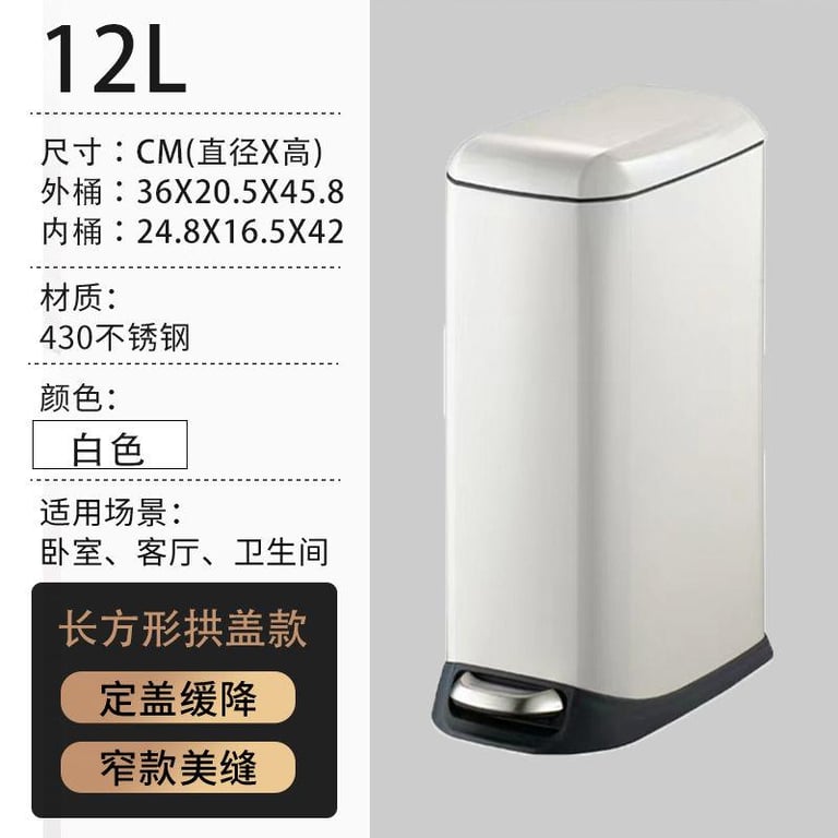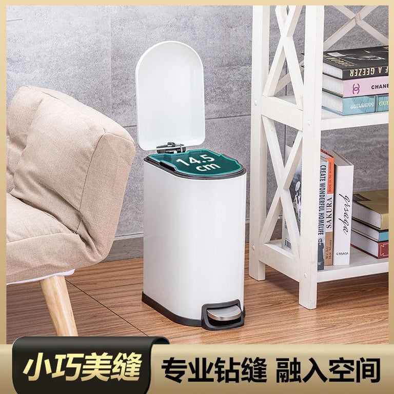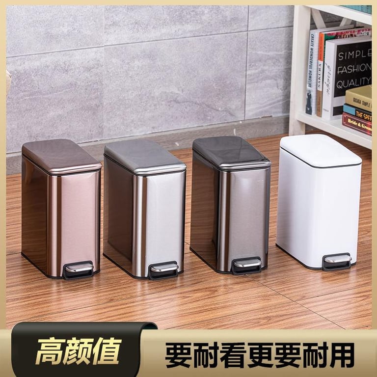 Stainless Steel Pedal Trash Can Household Rectangular Narrow-Slit Bathroom Light Luxury Creative Toilet Foot with Lid Small Size