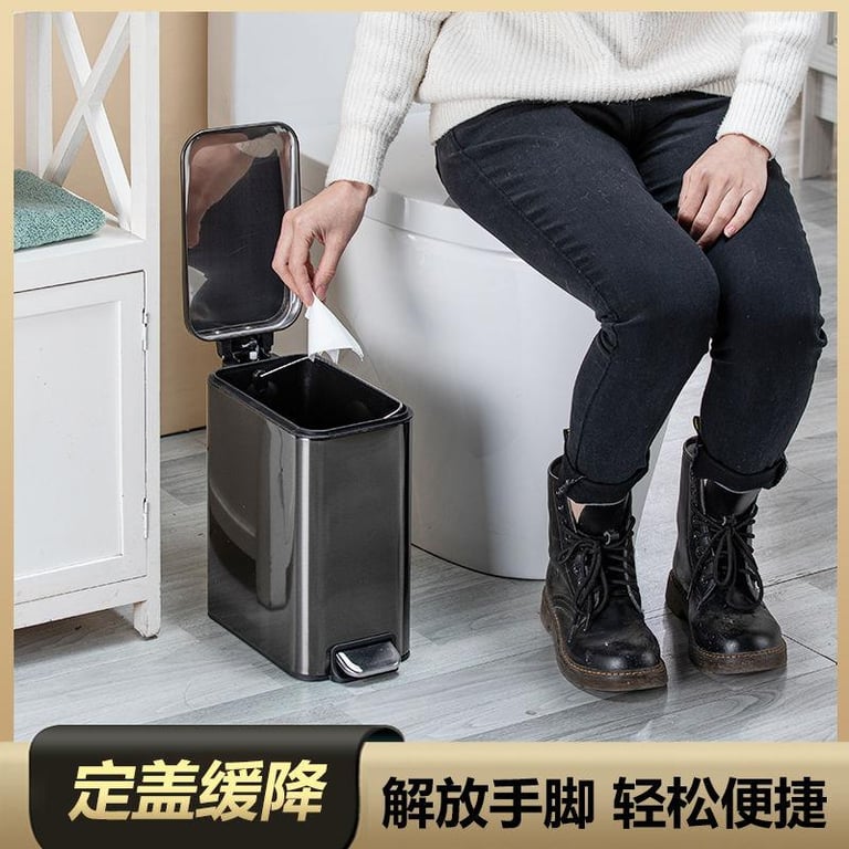 Stainless Steel Trash Can Step-on Kitchen Bathroom Creative Fashion Home Living Room Toilet Bedroom Square Step-on